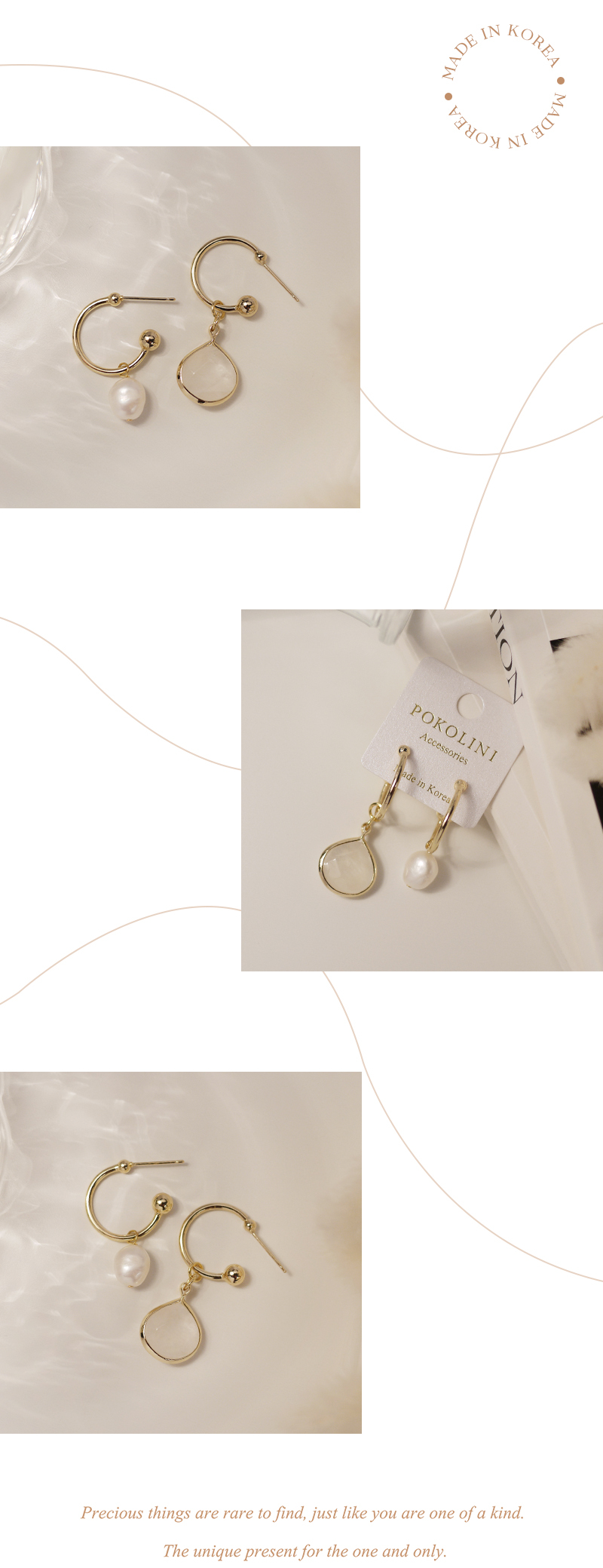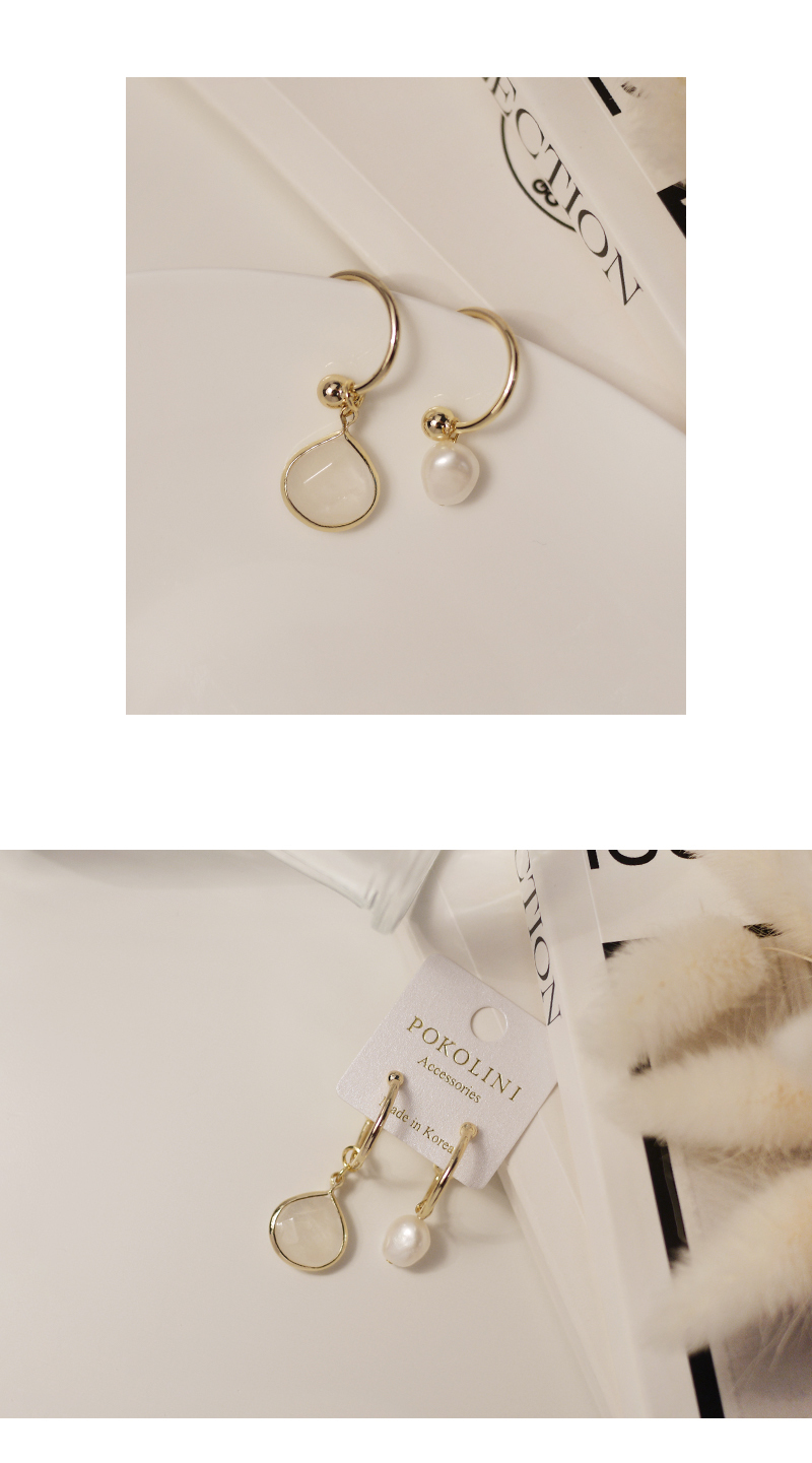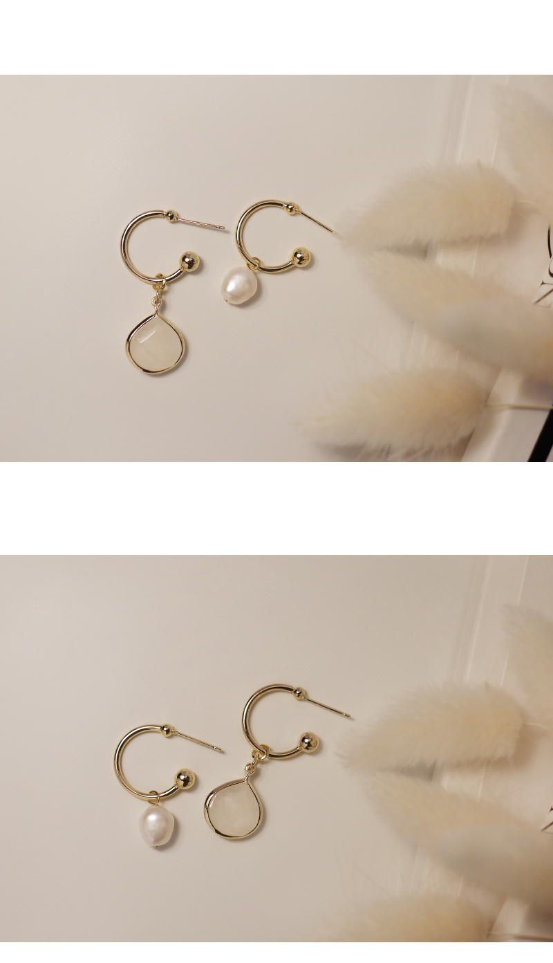 2504|不對稱珍珠與鋯石C環耳環