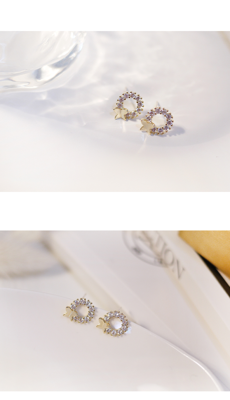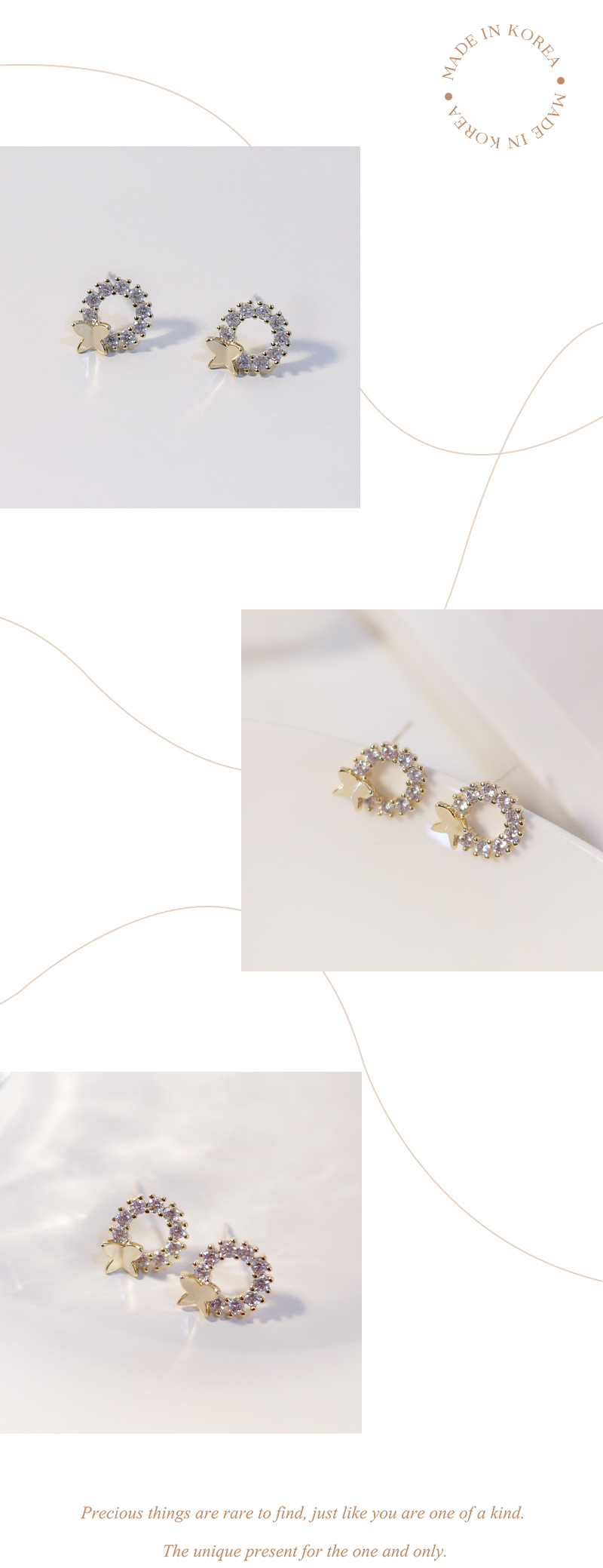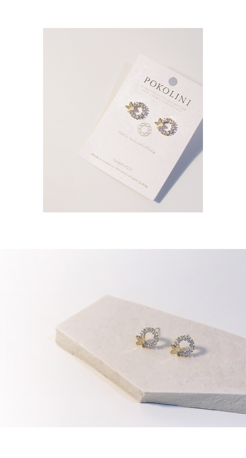 2557|圓形鑲鑽蝴蝶耳環
