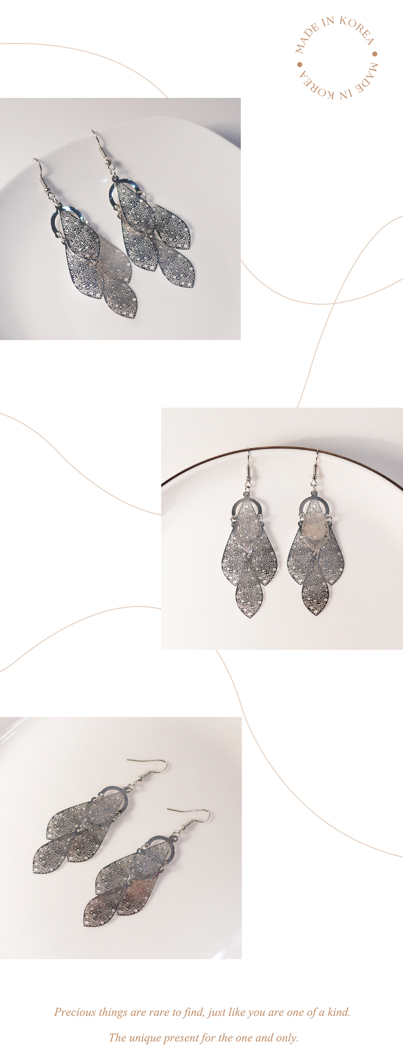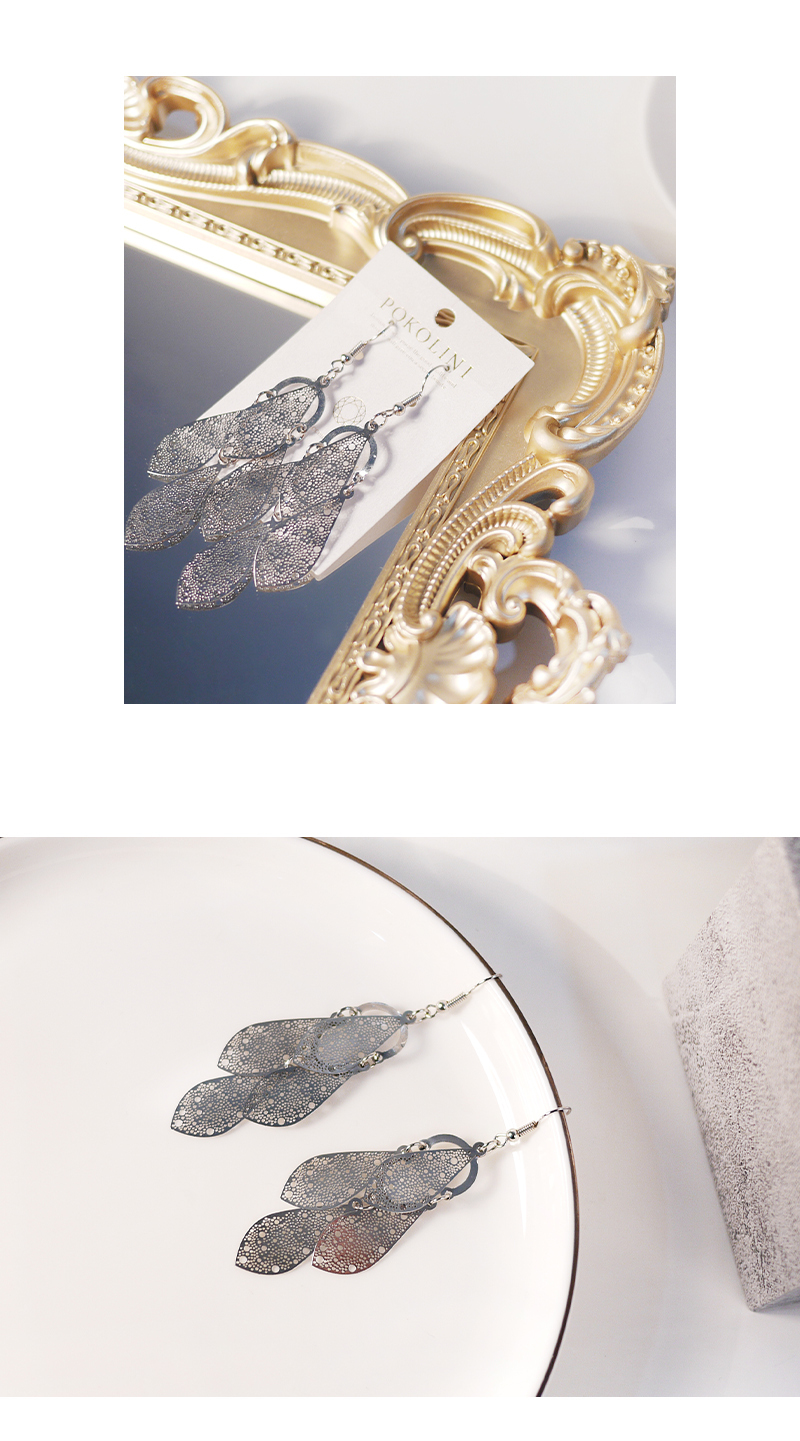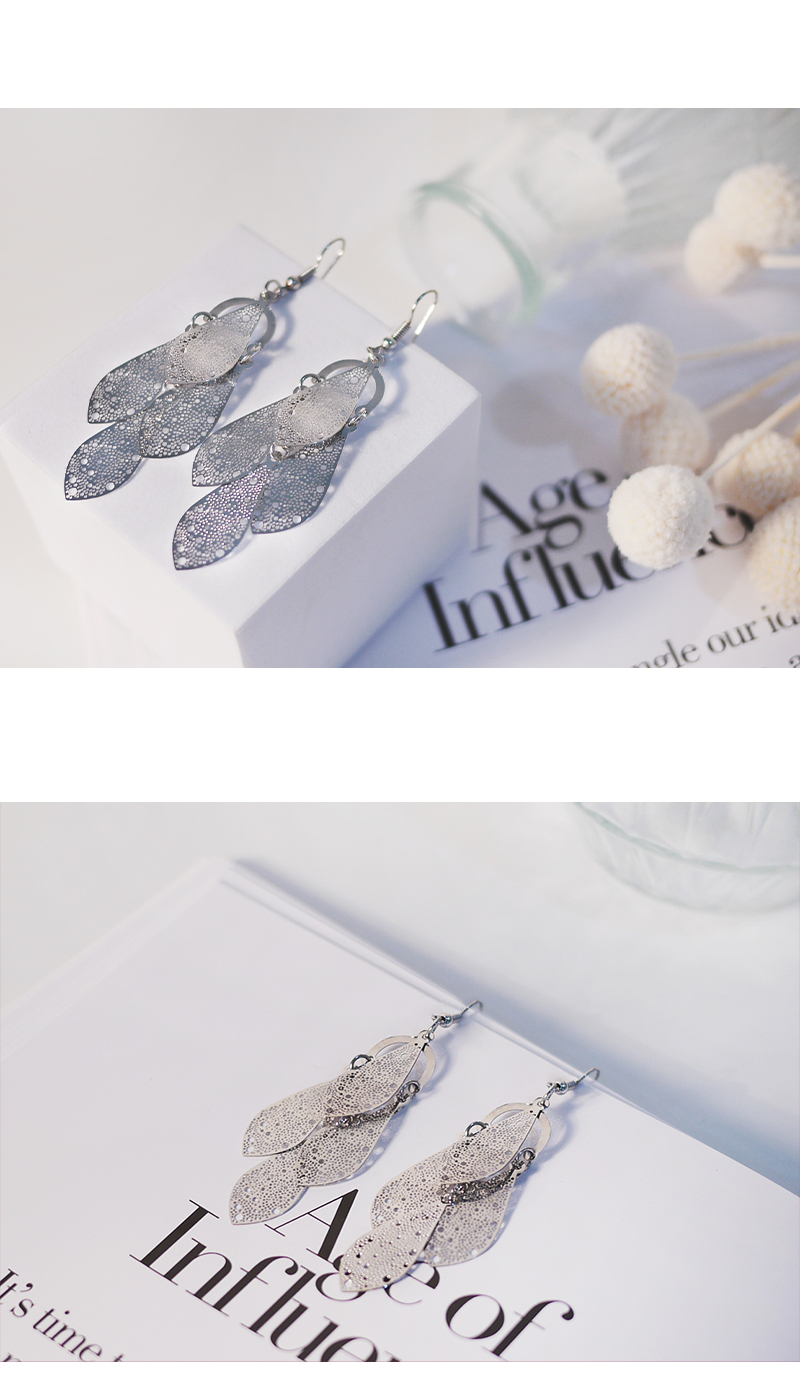 2935|垂墜款平面銀葉耳環