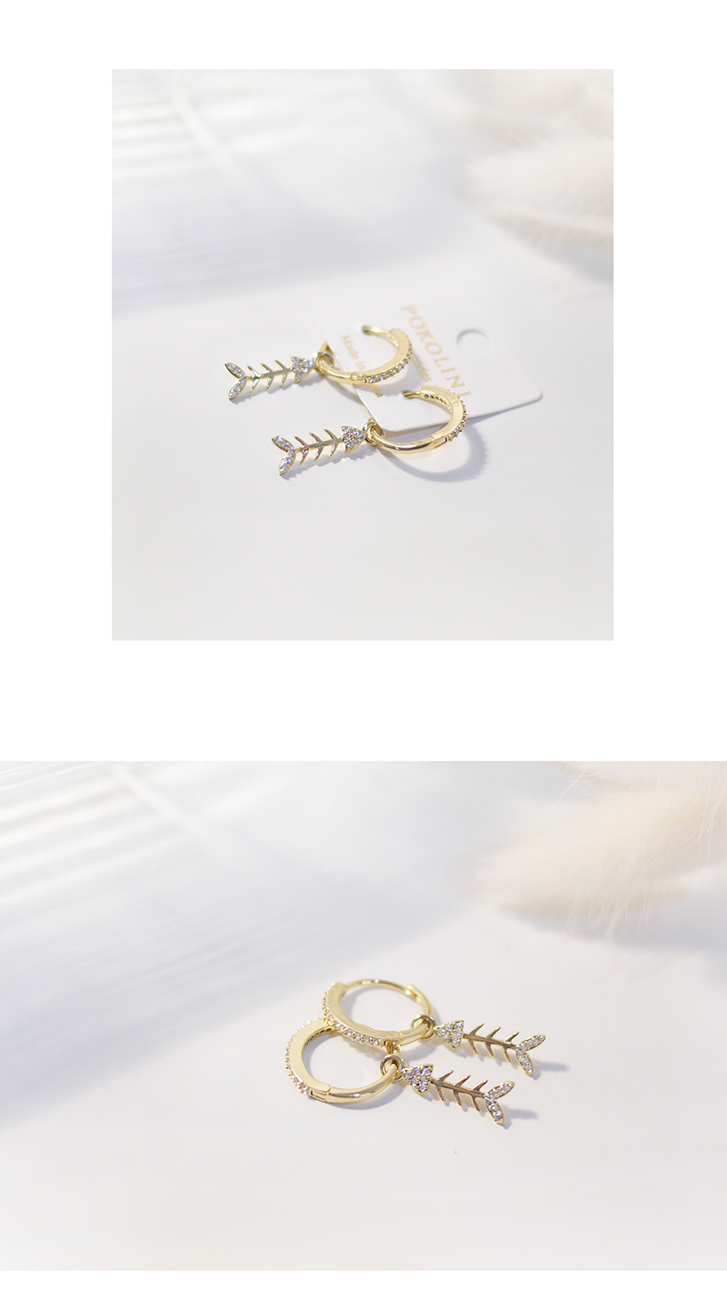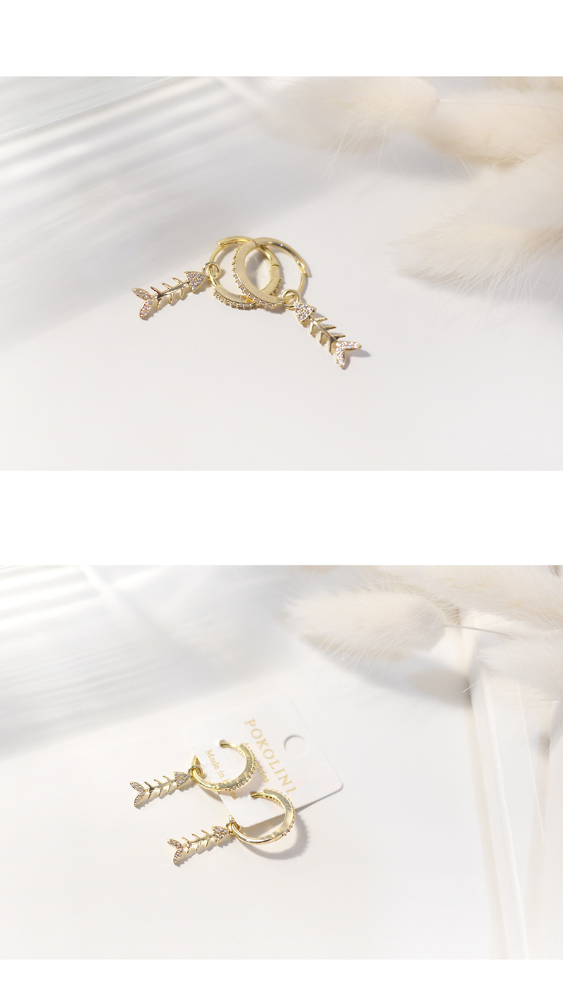 3005|魚骨鑲鑽扣式耳環