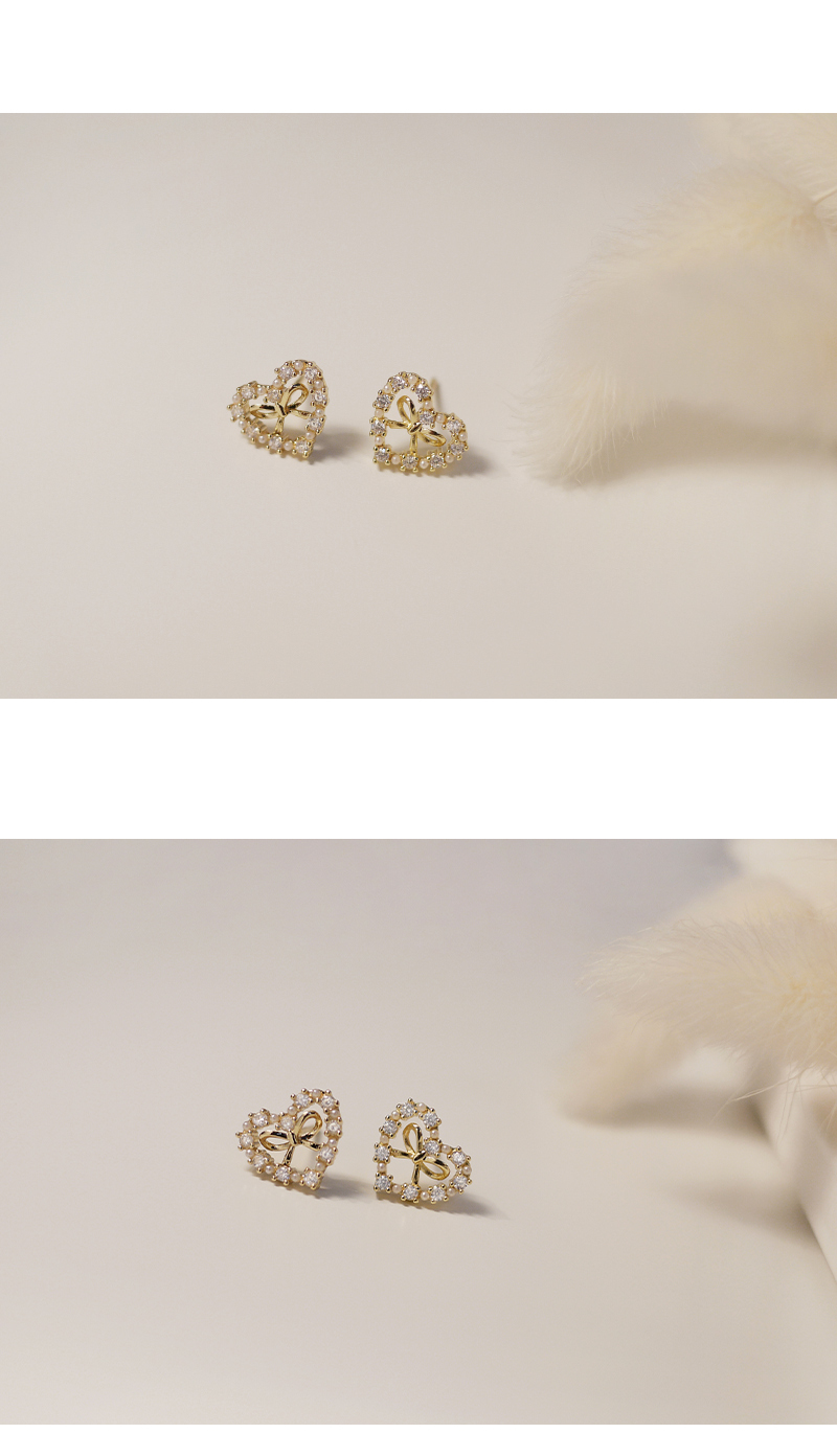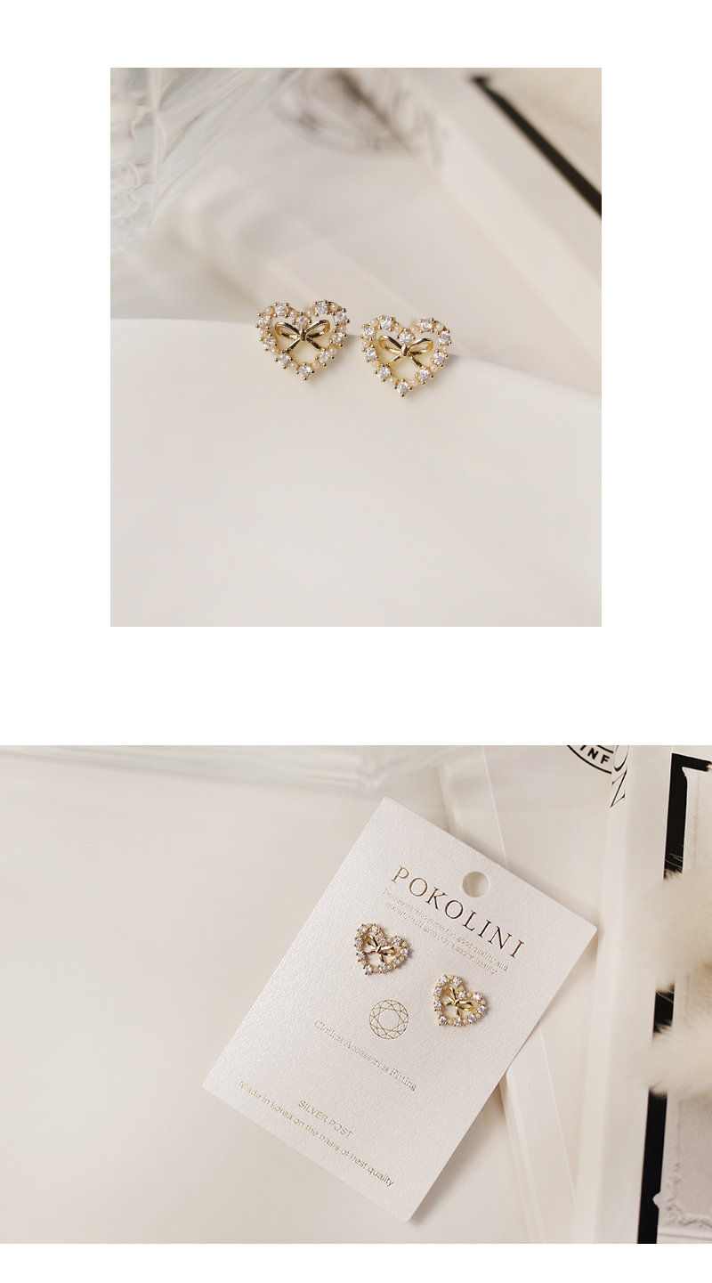 3228|蝴蝶結微鑲愛心耳環