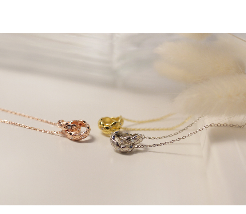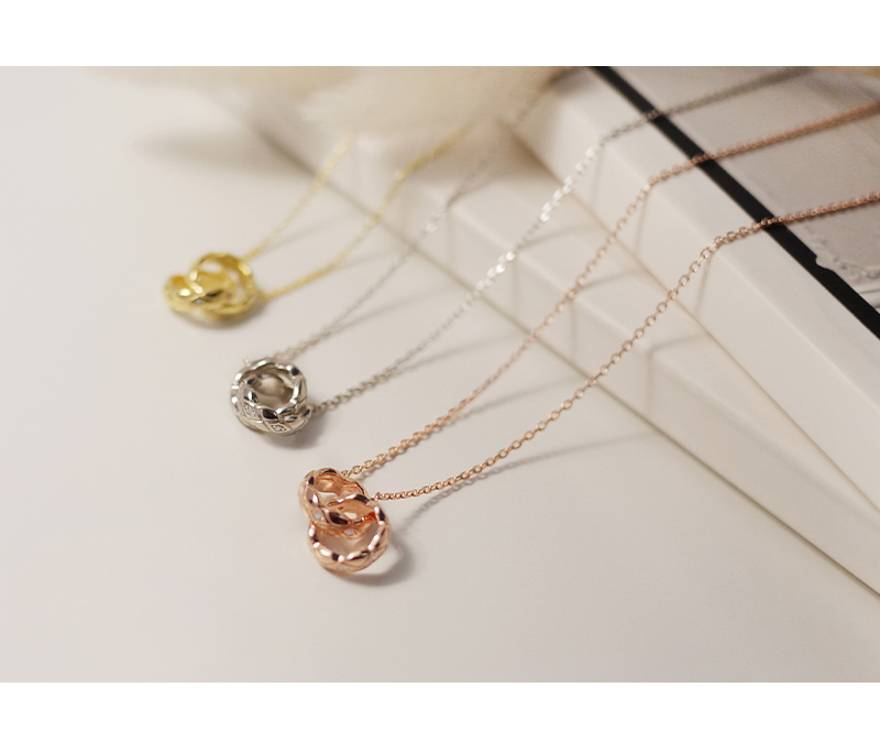 518|雙圈菱格紋鑲鑽_純銀項鍊