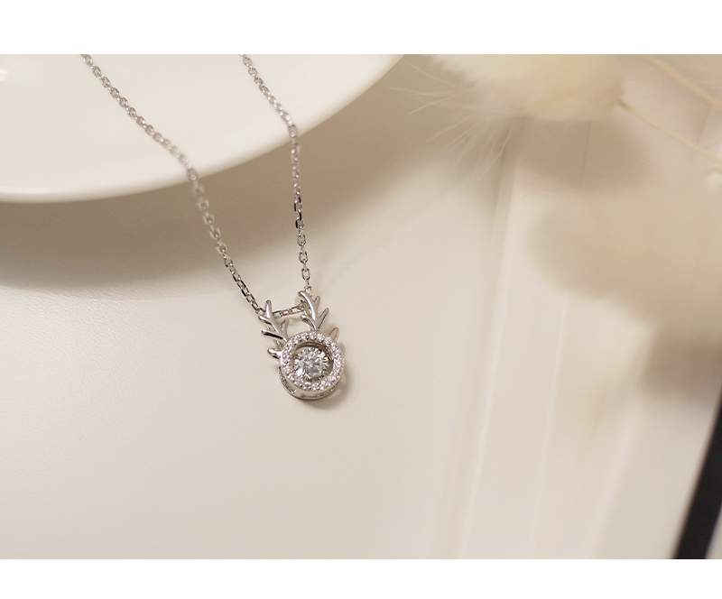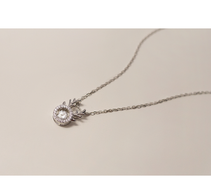 544|銀雪鑲鑽麋鹿_純銀項鍊